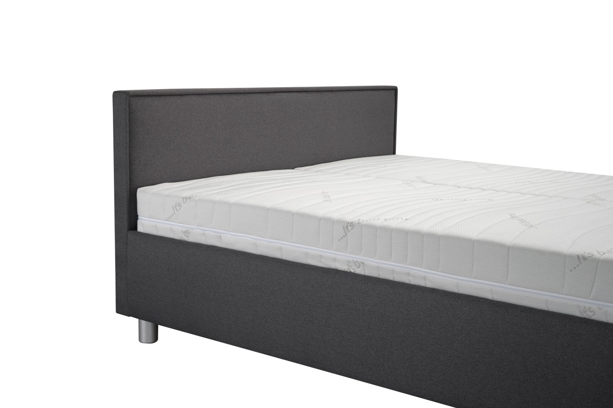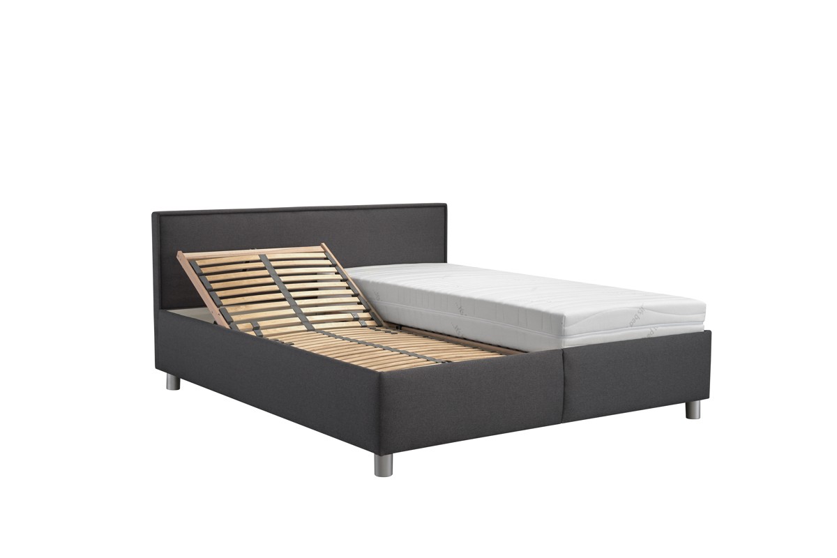 Postel má mechanicky polohovací lamelové rošty, které umožňují zvednutí hlavy v sedmi polohách a nohou v jedné relaxační poloze. Na lamelovém roštu je umístěna volně ložená matrace, která je opatřena textilním, snímatelným a pratelným potahem. Při výběru postele lze zvolit různý typ matrací z naší nabídky. Matrace máme vystavené na naší prodejně.