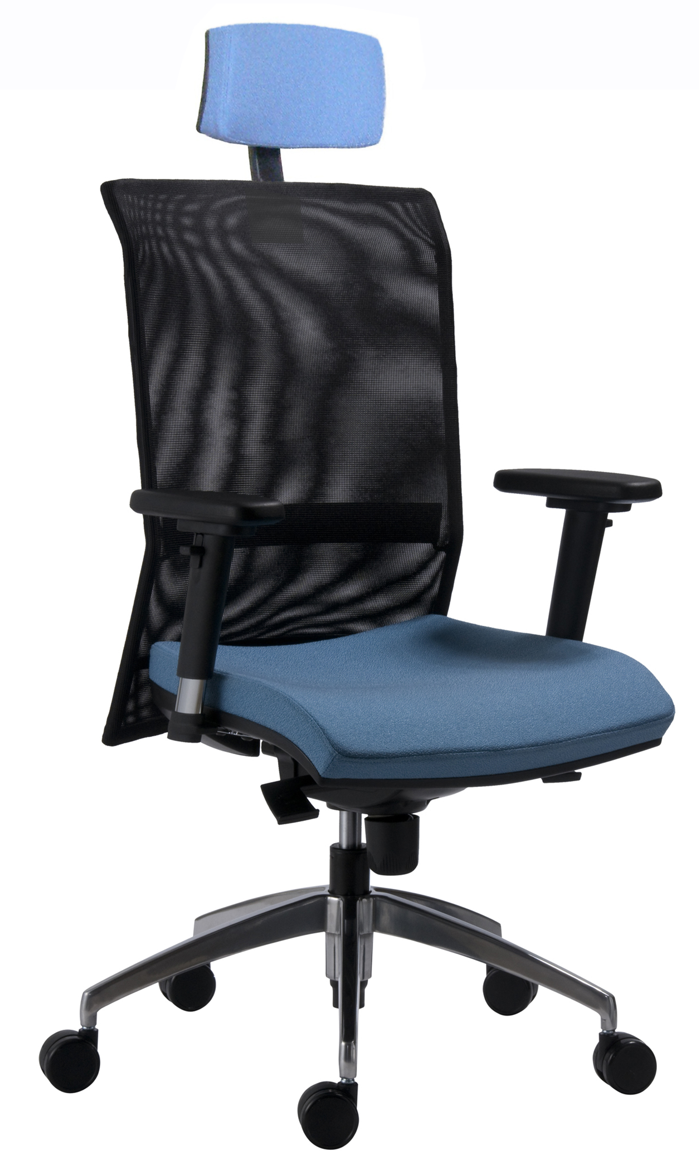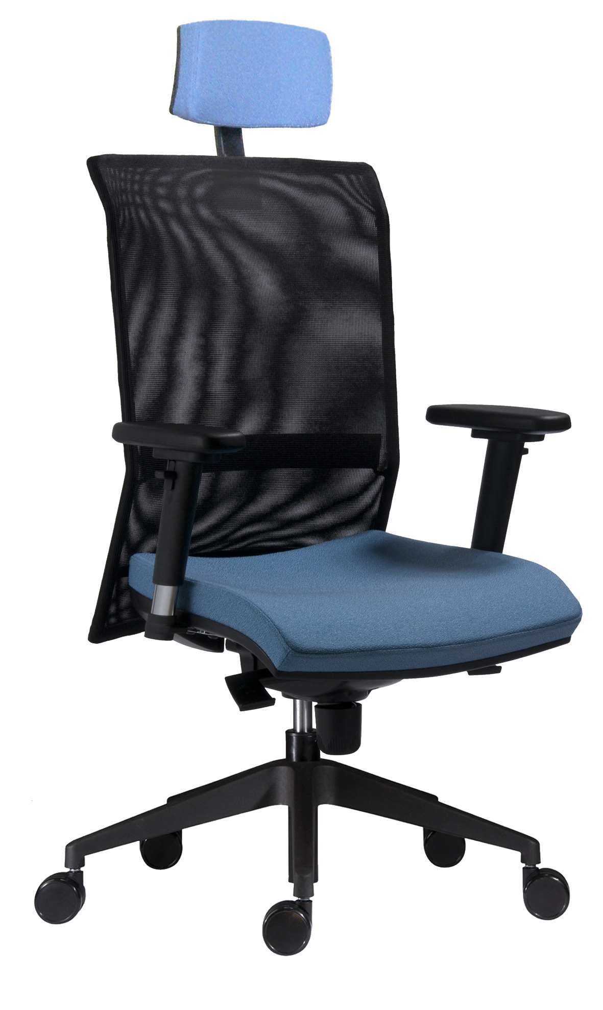 • verze NET – kancelářská židle s kvalitní síťovinou na opěráku a čalouněným sedákem, bederní výztuha pro zvýšení ergonomie